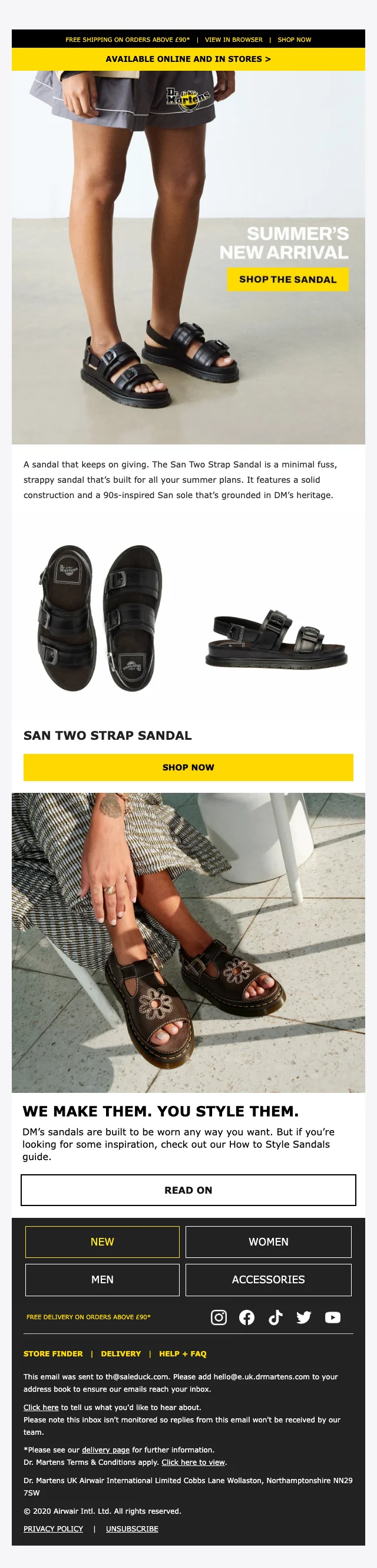 ถ้าคุณสั่งซื้อสินค้าจากร้านค้าออนไลน์ของ Dr. Martens เป็นครั้งแรก คุณจะได้รับส่วนลด 10% ทันที เพียงแค่กรอกอีเมล์เพื่อ Subscribe ง่ายๆ เท่านั้น