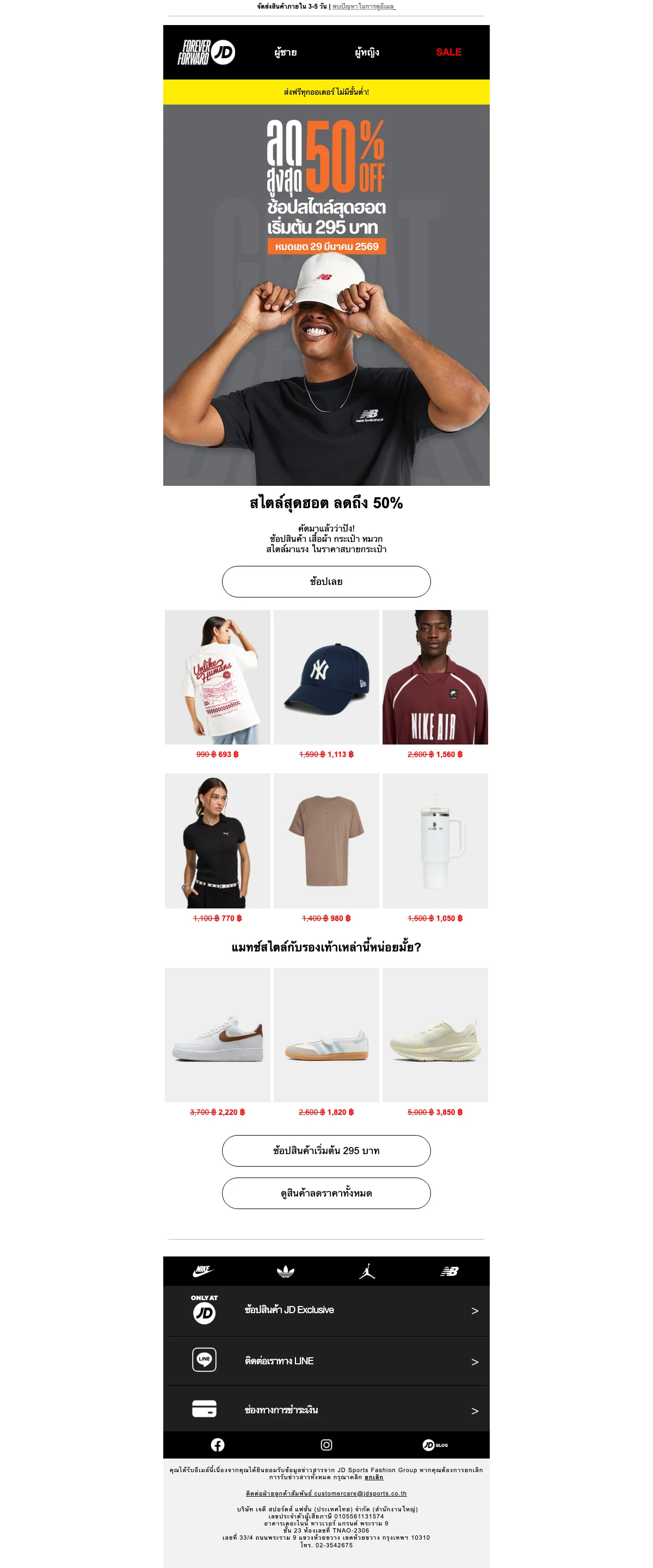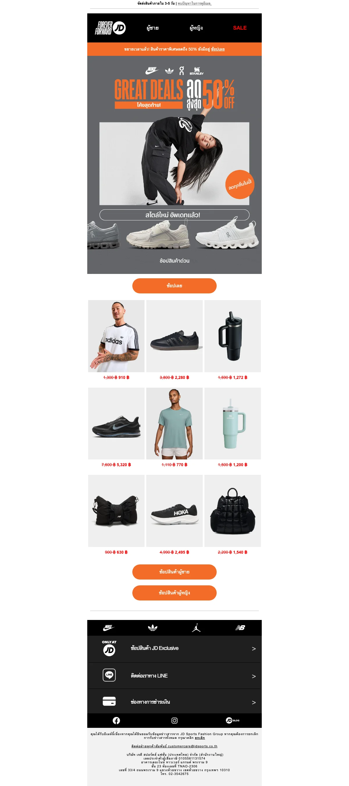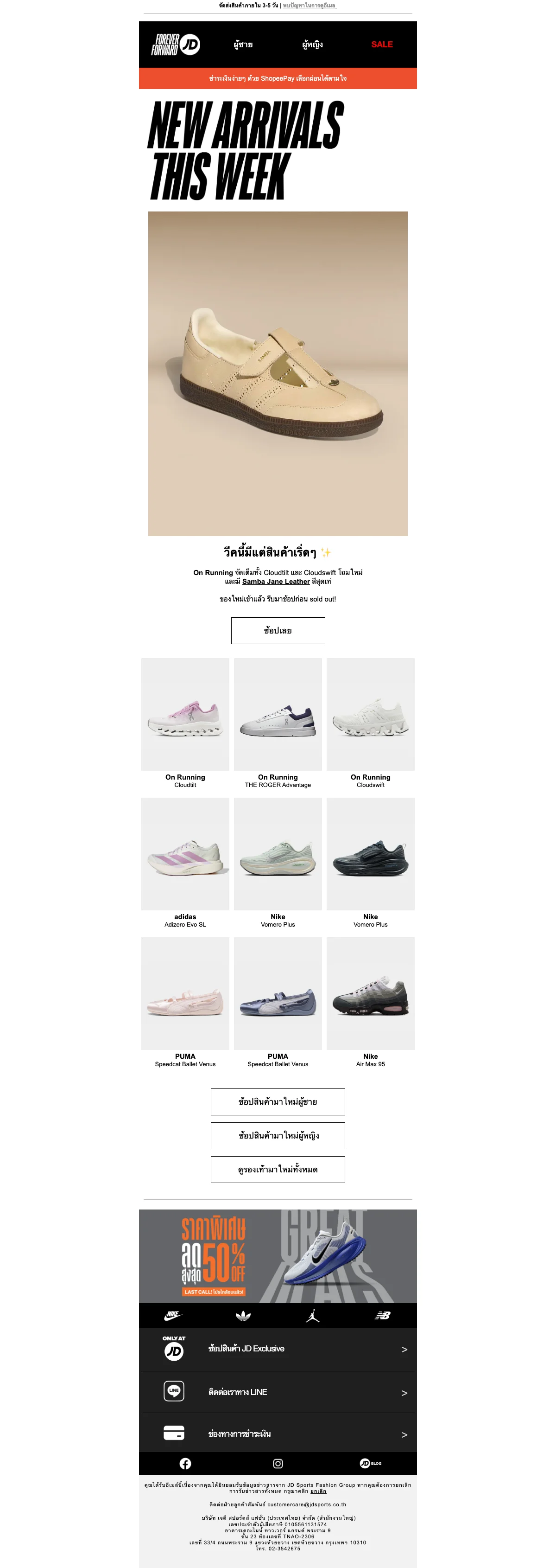 JD Sports โปรโมชั่น รองเท้าเริ่มต้น ลด 50% เริ่มที่ 3,000 บาท ช้อปออนไลน์
