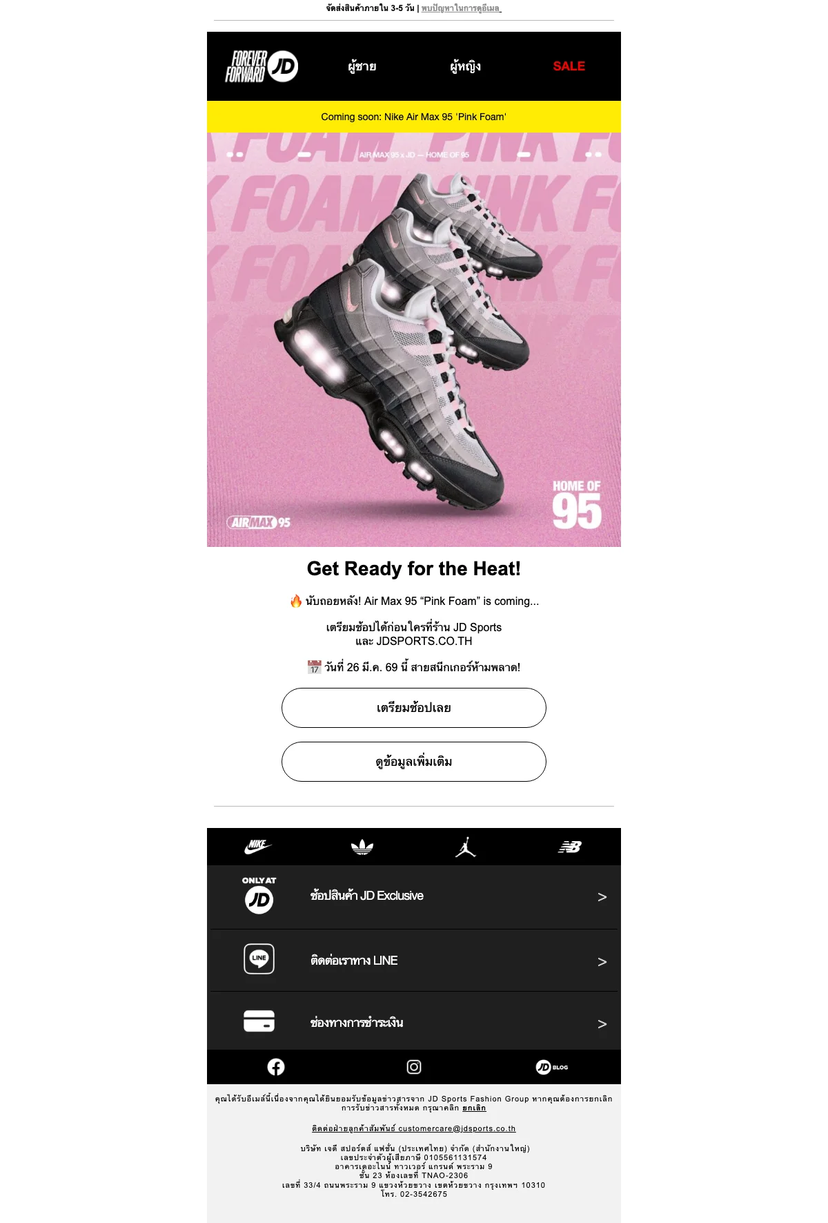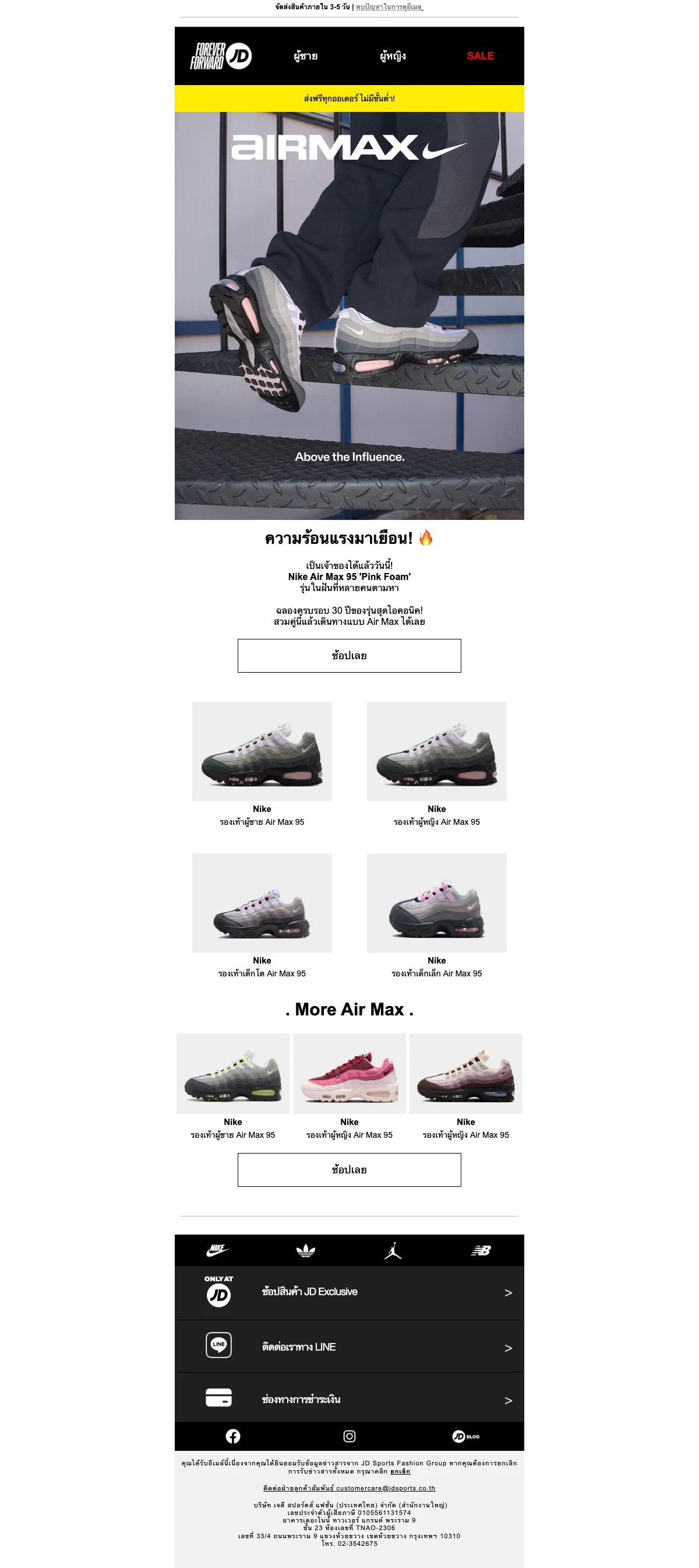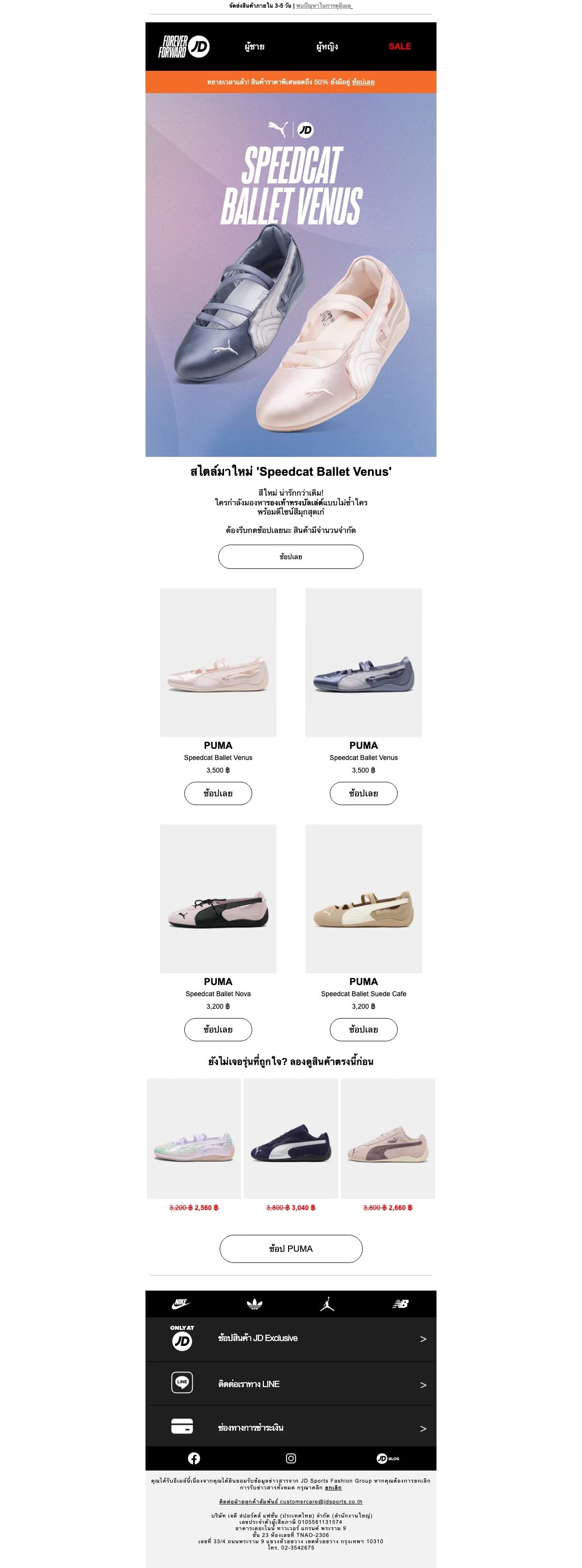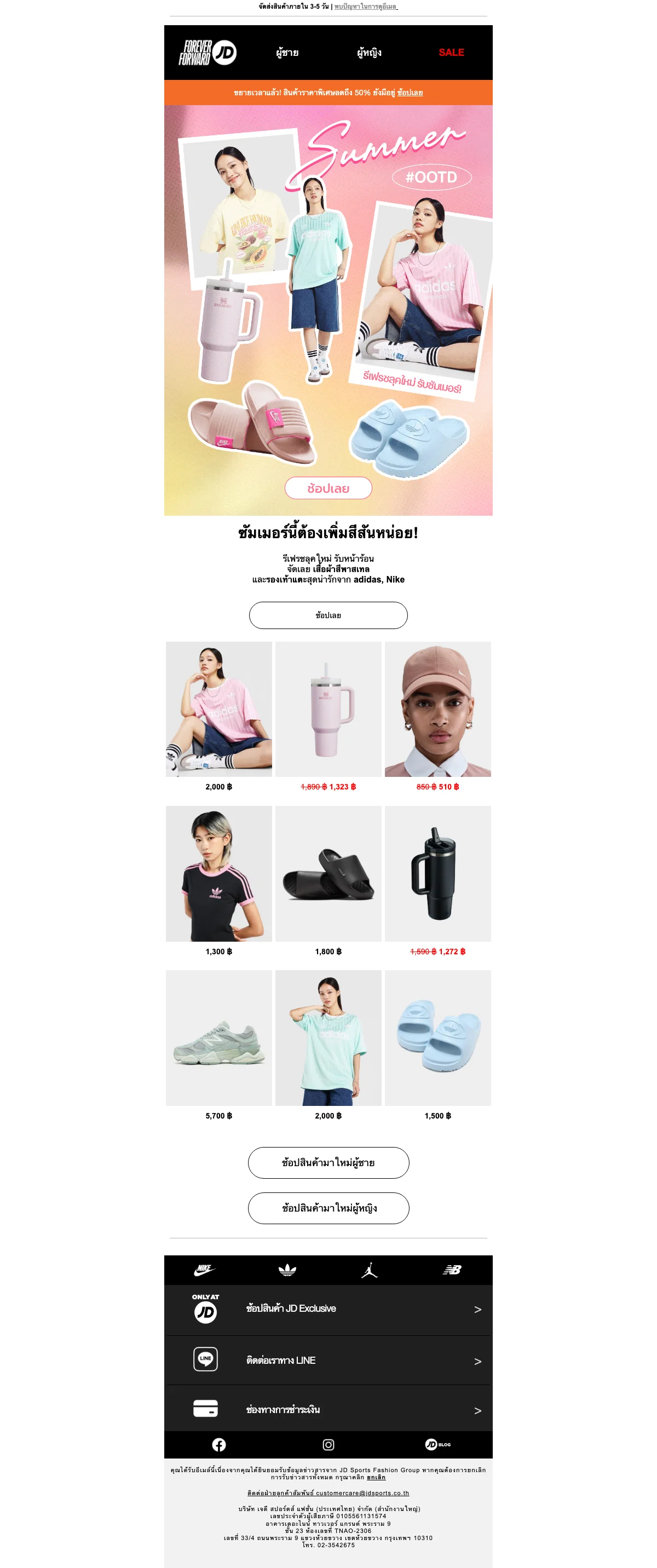 JD Sports โปรโมชั่น รองเท้าเริ่มต้น ลด 50% เริ่มที่ 3,000 บาท ช้อปออนไลน์