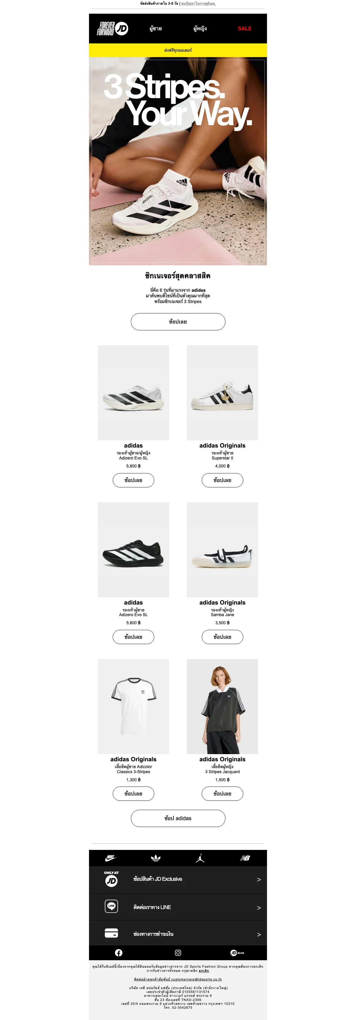 JD Sports แจกโปรโมชั่นส่งฟรี 0 บาท ทั่วประเทศไทย