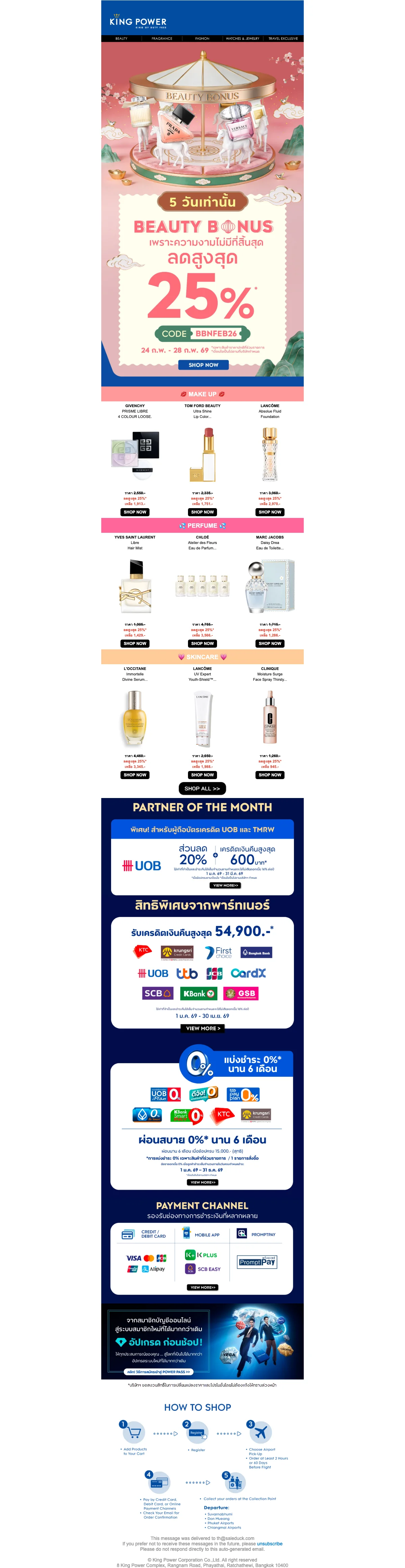 รับรองได้เลยว่า เข้ามาช้อปที่ King Power online คุณจะพบกับ โปรโมชั่น King power ส่วนลด คิงพาวเวอร์ King power ลดราคาและ สิทธิพิเศษมากมาย สำหรับสมาชิก King Power