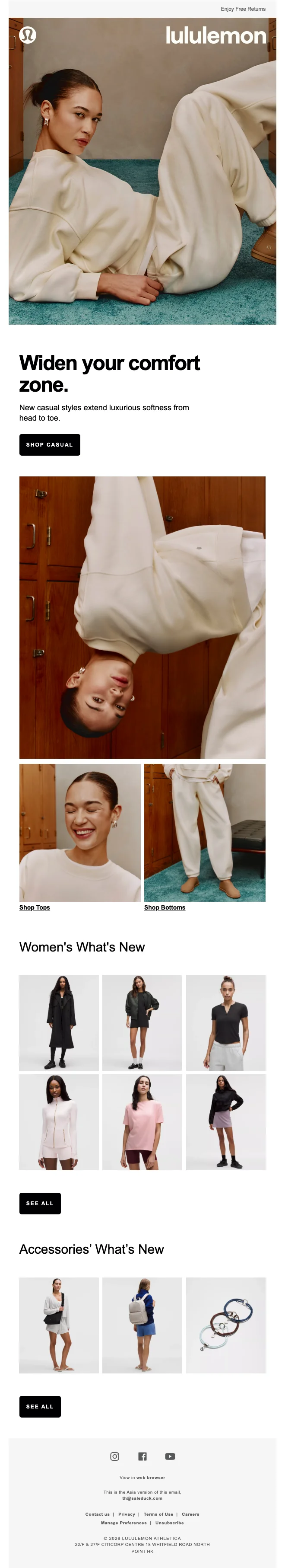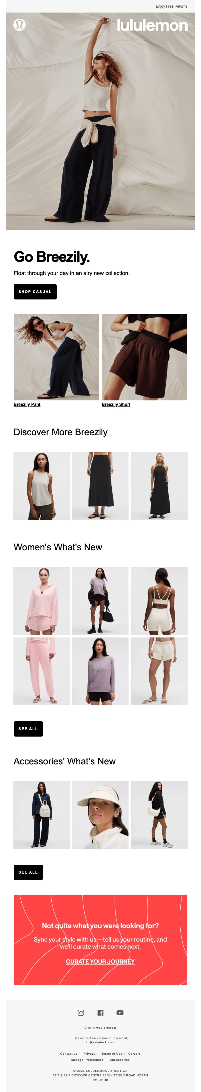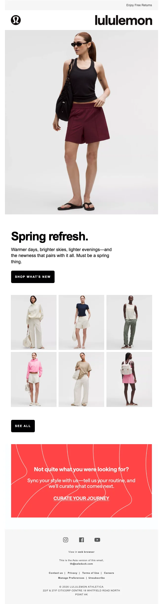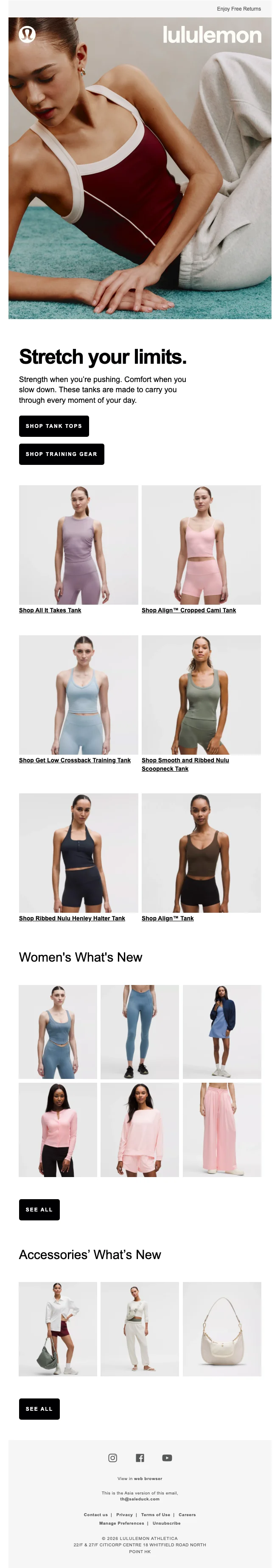 สมัครรับจดหมายข่าวตอนนี้! รับส่วนลด lululemon ทันที! 10% ในการช้อปออเดอร์ถัดไป